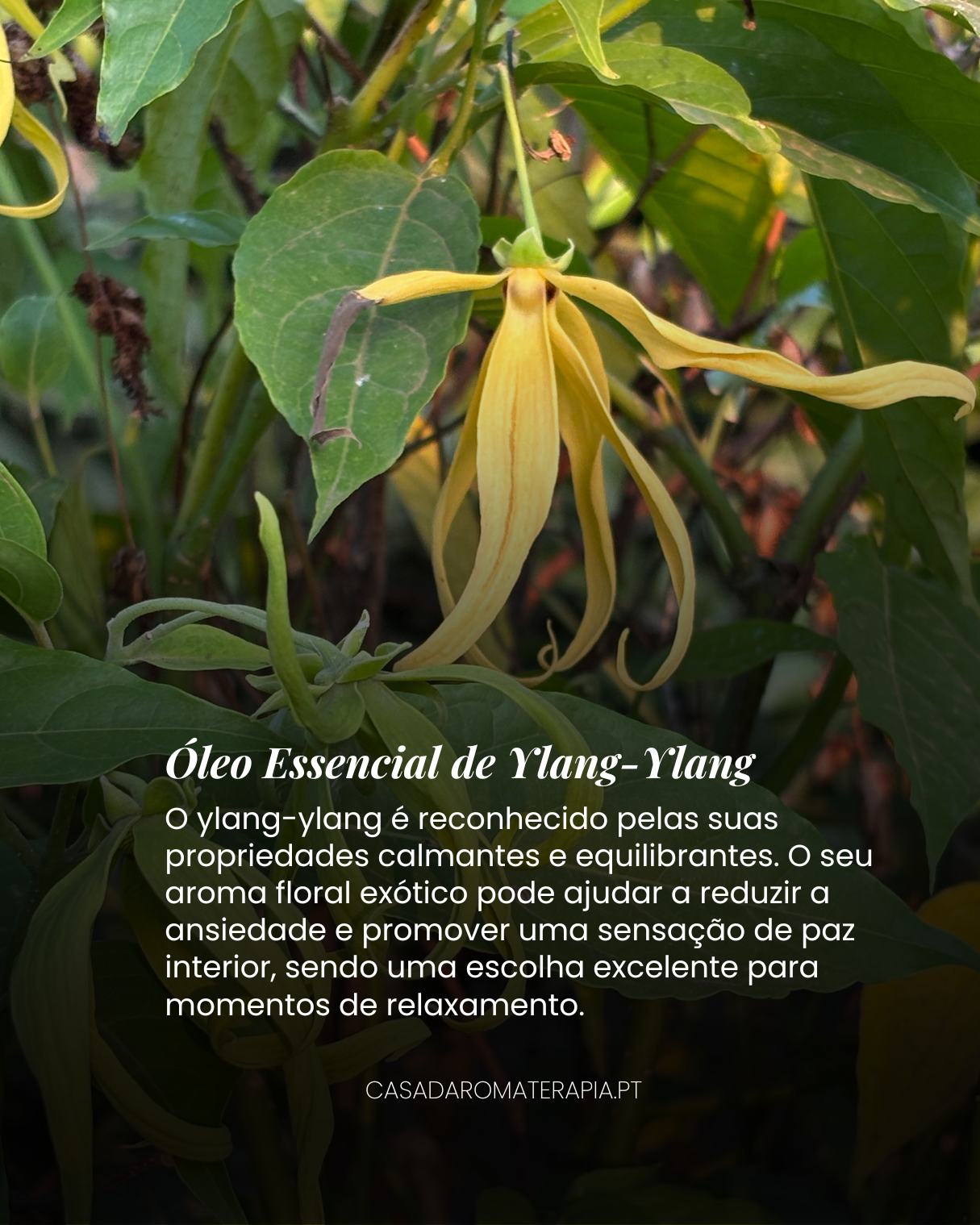 O ylang-ylang é reconhecido pelas suas propriedades calmantes e equilibrantes. O seu aroma floral exótico pode ajudar a reduzir a ansiedade e promover uma sensação de paz interior, sendo uma escolha excelente para momentos de relaxamento.