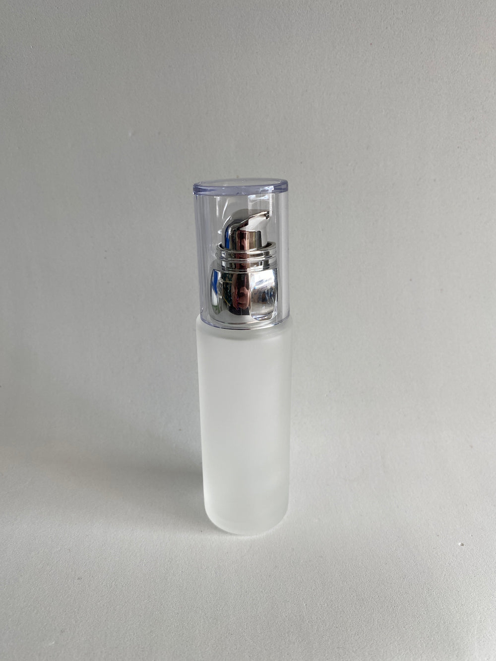 Flask with dosing pump in frosted glass in order to maintain the properties of its synergies.
