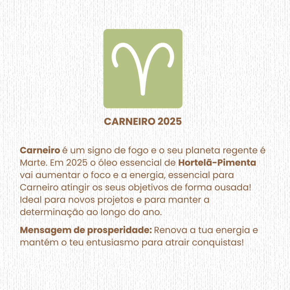 🌟 Dica para Carneiro: Use o Hortelã-Pimenta como um companheiro aromático para fortalecer a tua energia e enfrentar o ano com confiança!