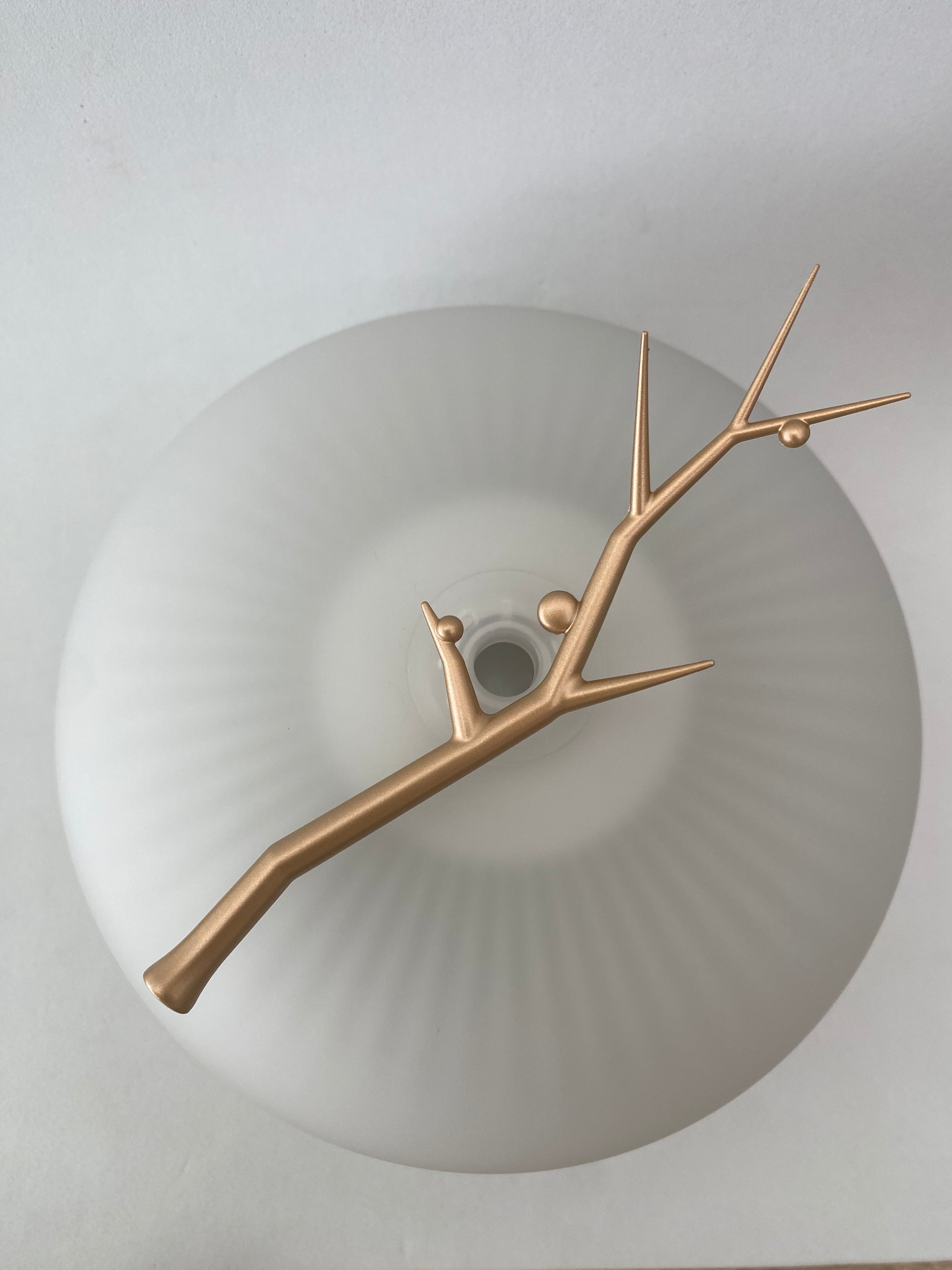 Material: Base em madeira natural com certificação FSC e cúpula em vidro soprado
