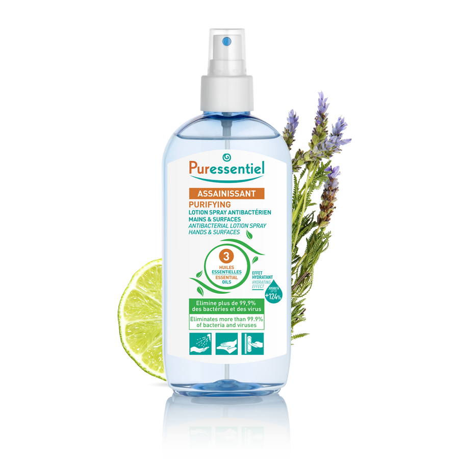 Mantenha as suas mãos e superfícies protegidas com a Loção Purificante em Spray Antibacteriana, uma solução eficaz e natural para a desinfeção diária. Com eficácia comprovada, elimina mais de 99,9% dos vírus e bactérias, incluindo o coronavírus humano, proporcionando segurança sem ressecar a pele. Ideal para o uso em casa, no trabalho ou em viagem.