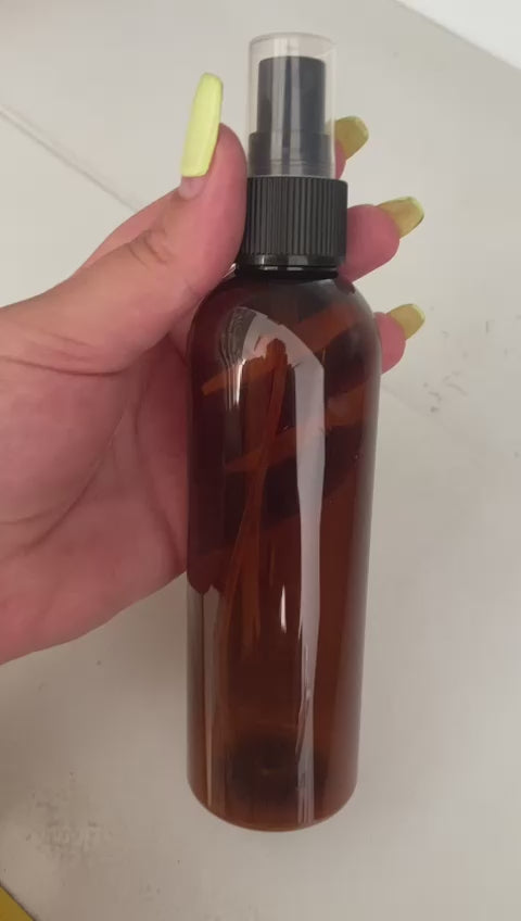 Este frasco PET de cor âmbar, com bomba spray compatível, é ideal para armazenar sinergias de óleos essenciais, hidrolatos ou outros líquidos sensíveis à luz. A cor âmbar protege o conteúdo da exposição direta à luz, ajudando a preservar as propriedades dos seus produtos naturais por mais tempo.