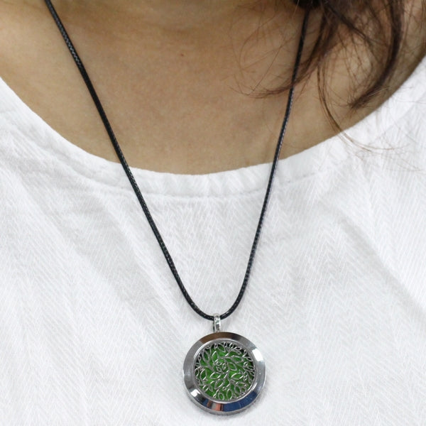 Desfrute dos benefícios da Aromaterapia em grande estilo com o nosso Colar Aromático em aço inoxidável, adornado com um fio de couro. Este acessório elegante é a forma perfeita de levar consigo a frescura revigorante dos seus óleos essenciais preferidos ao longo do dia.