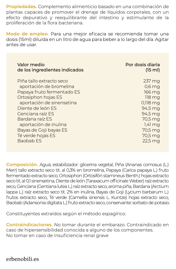 Ingredientes ativos: (Inserir lista de plantas, se aplicável, como bardana, alcachofra, funcho, etc.)
