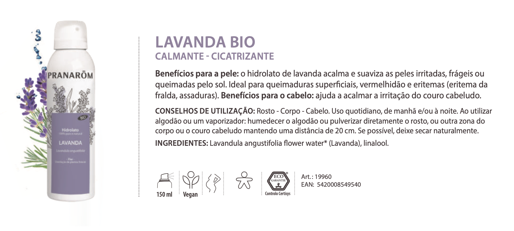Descubra o toque delicado da natureza com o Hidrolato de Lavanda em Spray da renomada marca Pranarôm. Este suave spray, extraído das flores de Lavandula angustifolia, oferece uma experiência refrescante e calmante para a sua rotina diária.