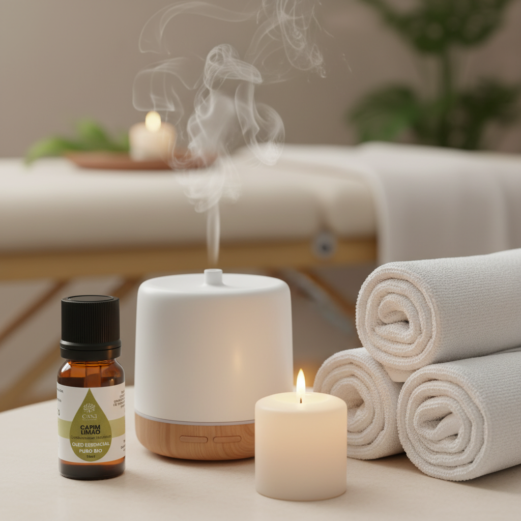 Na aromaterapia, o Capim-limão é reconhecido por sua ação revigorante sobre o sistema nervoso, ajudando a aliviar o stress, a ansiedade e a fadiga mental. Ao mesmo tempo, possui propriedades anti-inflamatórias e analgésicas que podem ser úteis para dores musculares. E graças à sua ação antimicrobiana, é um excelente aliado para purificar espaços e cuidar naturalmente da pele.