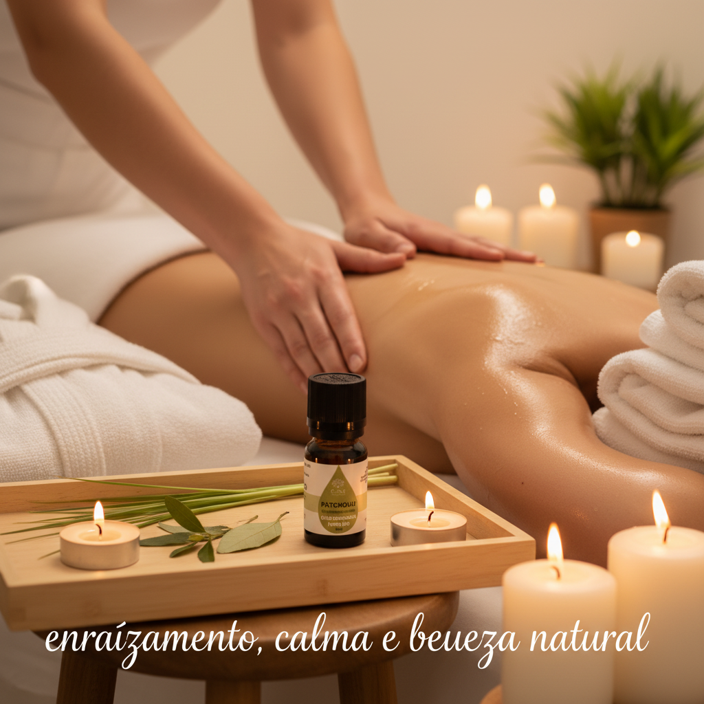 O Patchouli é altamente valorizado na aromaterapia pela sua capacidade de acalmar a mente, reduzir o stress e promover uma sensação duradoura de equilíbrio emocional. No cuidado da pele, é reconhecido pelas suas propriedades regeneradoras, sendo excelente para peles secas, maduras ou com tendência a inflamações. A sua fragrância intensa também o torna uma base perfeita para perfumes naturais e blends de meditação.